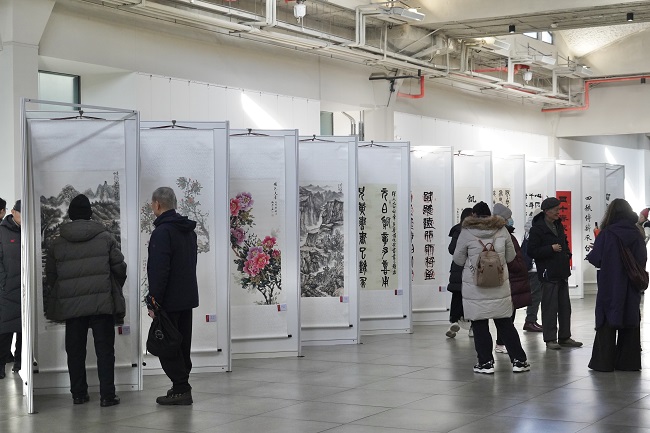 2月7日,北京齐白石艺术研究会成立四十周年书画精品展在北京天鼎218文化金融园开展。展览展出研究会会员及齐派传人作品150幅。