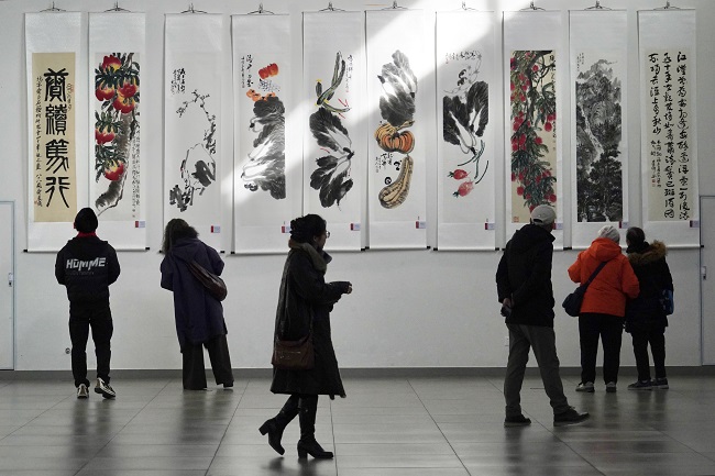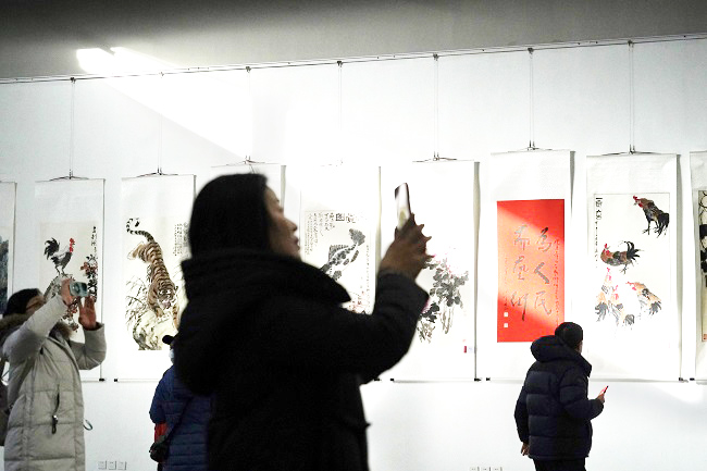 2月7日,北京齐白石艺术研究会成立四十周年书画精品展在北京天鼎218文化金融园开展。展览展出研究会会员及齐派传人作品150幅。
